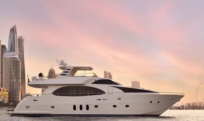 The 90 ft Haigan by PR Marine makes a fantastic addition to our luxury yacht fleet thanks to her spectacular features and amenities. The yacht has been designed to create memorable sailing experiences that excite and relax at the same time. She also features 4 spacious cabins where 8 guests can stay comfortably. Simply put, PR Marine has pulled out all the stops to ensure that each charter trip onboard their yachts is nothing short of sensational. Rental prices for PR Marine yachts start from AED 4000 AED/hour and AED 40000 AED/day.